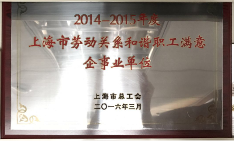 公司榮獲上海市總工會頒發“2014-2015年度勞動關系和諧職工滿意企事業單位”榮譽稱號。